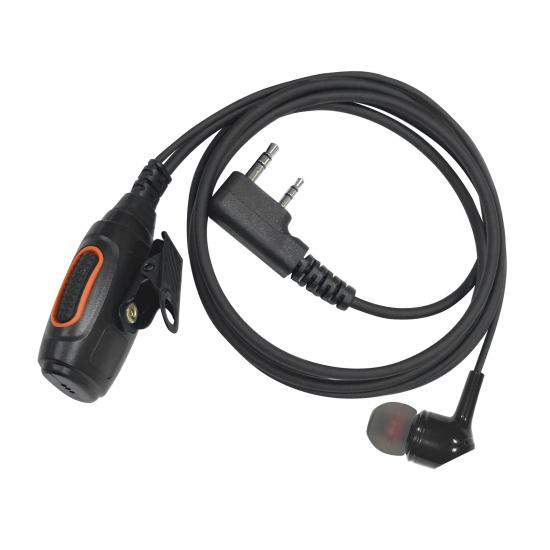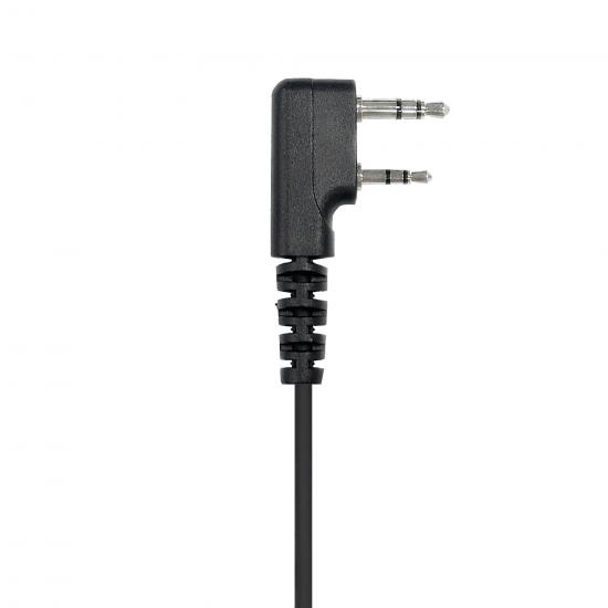 Проводная гарнитура для портативных раций оснащена прочным полиуретановым кабелем в усиленной кевларовой оплётке, устойчивой к износу и растяжению. Конструкция включает компактный внутриушной наушник и выносной микрофон с кнопкой передачи, что делает гарнитуру простым, надежным и функциональным решением для ежедневного использования.
