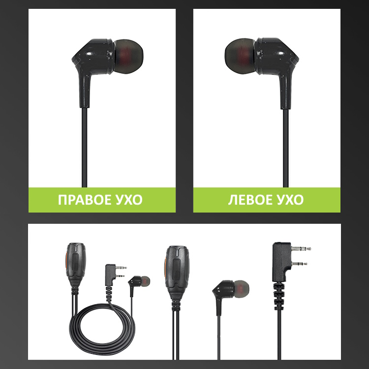 Гарнитура не требует настройки и источников питания — достаточно подключить её к радиостанции, и она сразу готова к работе.