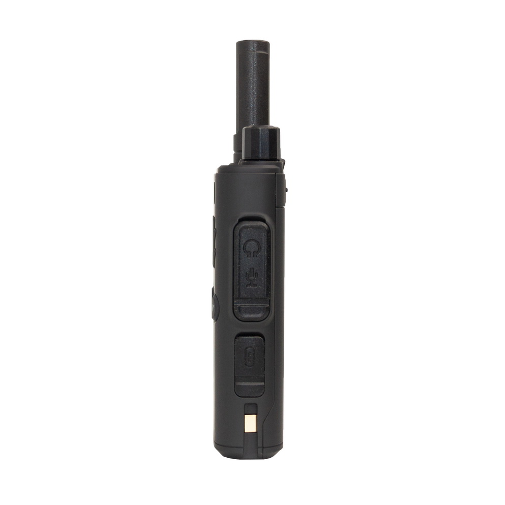 Малогабаритная рация. Выходная мощность 0.5/3 Вт. Две кнопки РТТ. Несъемная антенна. Зарядка через стакан или напрямую через Type_C. Яркий фонарик. Голосовое оповещение режимов работы.